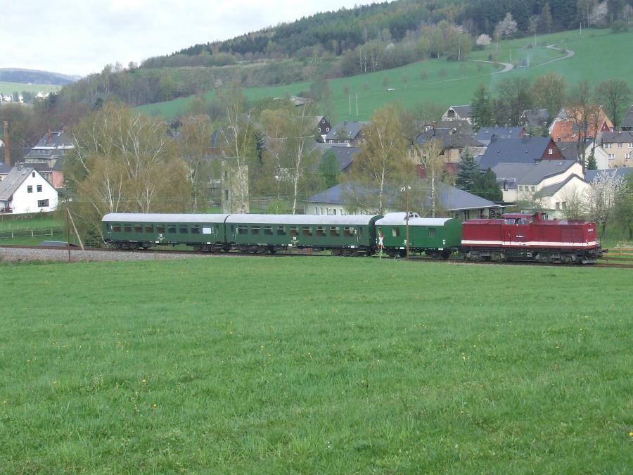 Zurück nach Raschau. Zeit für den Personenzug, mit dem 112 646 auf dem Weg von Schwarzenberg nach Schlettau ist...