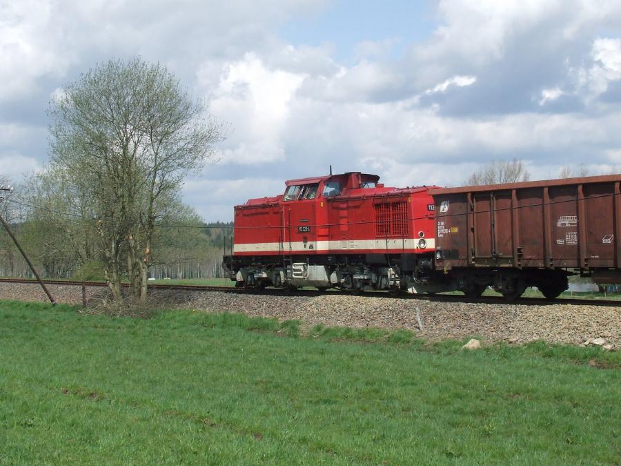 Scheibenberg. "Schieber" 112 326 der PRESS. Der 01.05.2008 war der letzte Betriebstag der 112 326 in ihrem "DR-Farbkleid" - sie erhält die übliche blaue Farbgebung der PRESS.