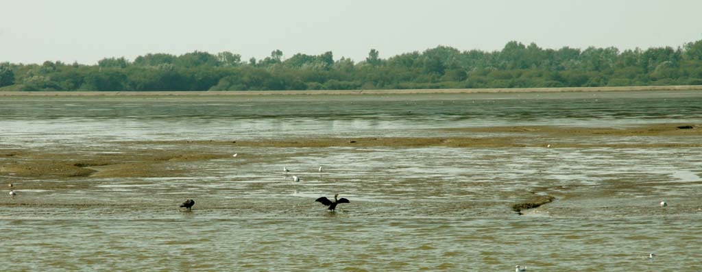 Der nächste Tag stand im Zeichen der christlichen Seefahrt... Die Zweibeinerin trieb das Projekt vehement voran, da die Wettervorhersage ein Ende des schönen Wetters vorhersagte. Schiffsfahrten werden im Wattenmeer in recht großer Zahl angeboten. Die Entscheidung fiel für eine Eiderfahrt von Tönning zum Eidersperrwerk mit der Adler-2 von der Reederei "Adler-Schiffe". Am Eidersperrwerk wird das Schiff "ausgeschleust" und legt im Außenhafen an. Etwa auf halber Strecke zwischen Tönning und Eidersperrwerk passiert das Schiff auch von Robben bevorzugte Sandbänke. Was sonst noch auffiel, waren die vielen Kormorane... |