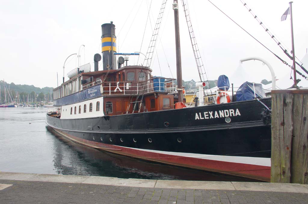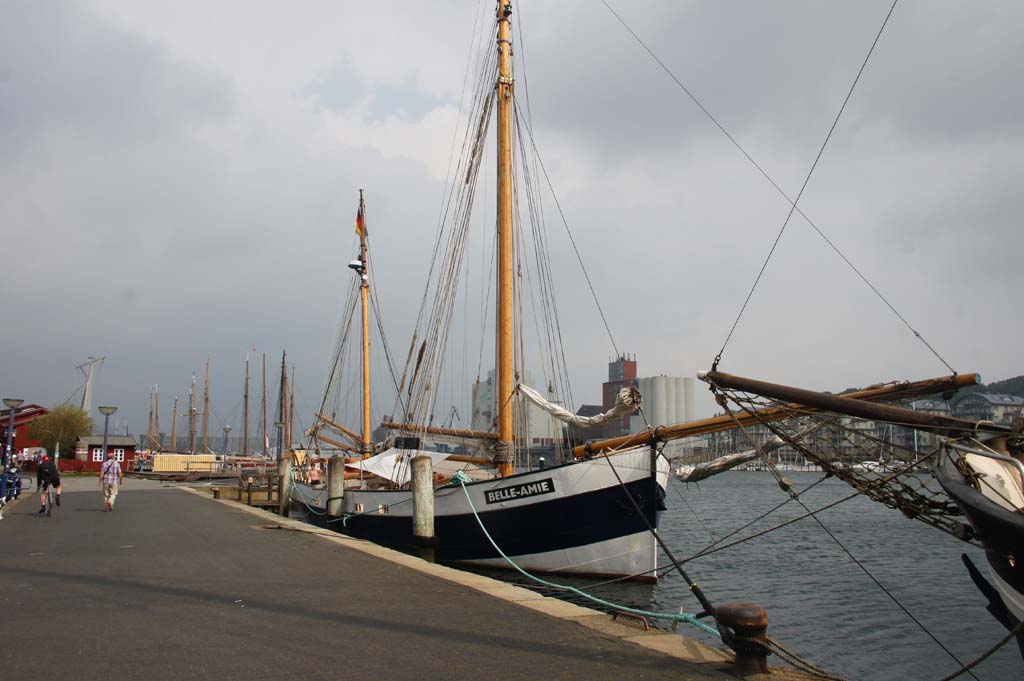 | Beim Frühstück fiel der Beschluss, Flensburg einen Besuch abzustatten: Flensburg hat einen sehr schönen Museumshafen. Da liegen eine ganze Reihe historischer Schiffe, die bei besonderen Anlässen oder auch durchaus regelmäßig zum Verkehr auf dem Wasser benutzt werden. Mit meinem hündischen Umfassungsblick behaupte ich, dass so eine Fahrt auf so einem historischen Schiff viel angenehmer sein würde, als das vor 2 Tagen mit dem Motorschiff auf der Eider war. | ||||