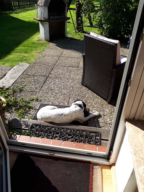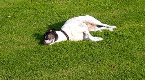 So Viel Nasenarbeit macht ganz schön müde... So habe ich es mir auf dem Rasen gemütlich gemacht.