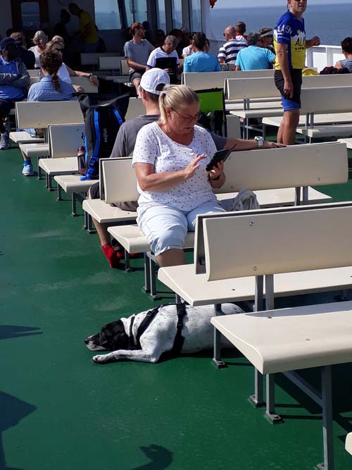 Die Zweibeinerin hat sich Schüttsiel als Ziel gewünscht. Rund um Schüttsiel gibt es viele Binnenwasserflächen, wo Hund ganz viele Vögel zu sehen bekommt. Auf irgendeinem Info-Aufsteller hat der Zweibeiner gelesen, dass das Wattenmeer das vogelreichste Gebiet in Europa ist. Oh Hund eh - hier müsste Hund "praktizierender Jagdhund auf dem Lande" sein... Was los ist ansonsten vor allem im Fährhafen. Von Schüttsiel aus geht die Fähre nach Hallig Hooge. |