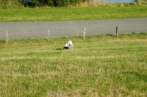 | Frührunde, Besuch beim Bäcker und auagiebiges Frühstück. Danach sollte es direkt zum Hundestrand am Nordstrand in St. Peter Ording gehen. Ja - ist eigentlich verrückt: ich und meine Zweibeiner waren noch nie an jenem weit über Deutschland hinaus bekannten Hundestrand mit der sagenhaften Strandbreite! | ||||