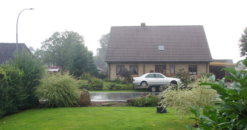 | Bei unserer Rückkehr nach Bohmstedt setzte wieder dieser hässlich Starkregen ein... Damit war auch die 2. Urlaubswoche vorüber. | ||||
