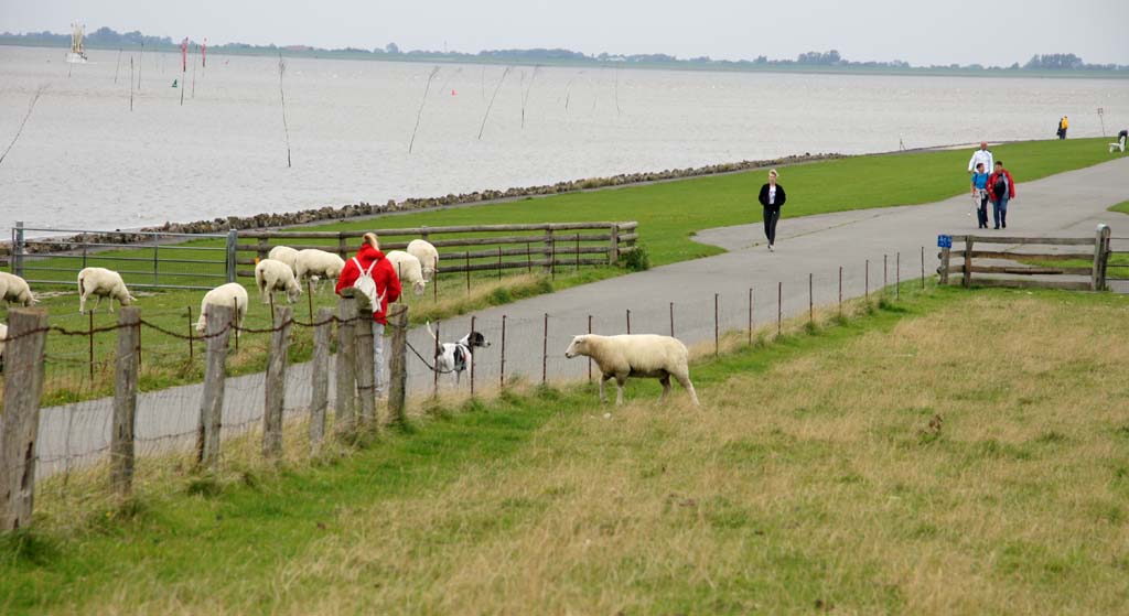 So viel Bewegung tut richtig gut. Natürlich kann es passieren, dass sich Hund auch mal Auge in Auge mit einem Schaf gegenüber sieht. Mit Kühen habe ich es ja nicht so, aber ein Schaf sollte für mich kein Problem sein. Die an der Nordsee ansässigen Schafe haben ja in der Regel keine Hörner... |