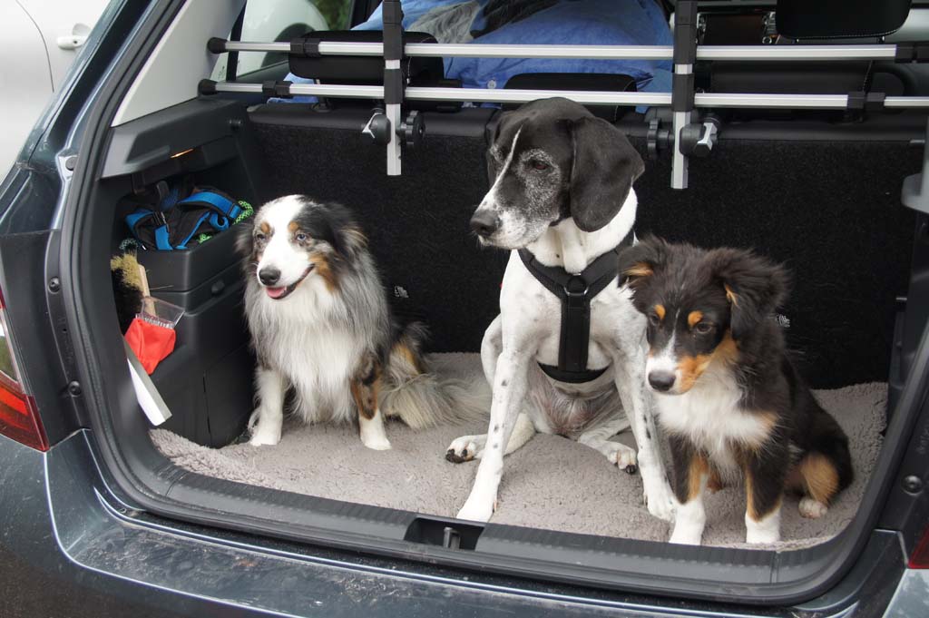 | Und dann habe ich gerade meine Frührunde mit dem Zweibeiner wegen plötzlichem starken Regen abgebrochen und war kurz vor der Unterkunft, als das Auto mit Odin und Merlin und deren Zweibeinern plötzlich hinter uns war. Die waren doch tatsächlich schon früh um 05:00 Uhr in Hannover gestartet... | ||||