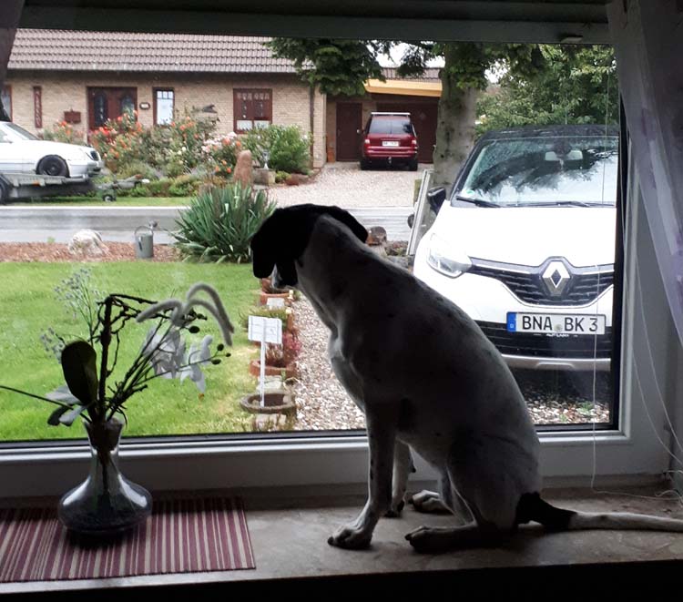 | Allerdings habe ich ein ganz großes Problem mit dem Haus: Im Dachgeschoss wohnen Sohn und Enkelin der Vermieter. Ich bin es aber gewohnt, dass da außer mir und meinen Zweibeinern niemand Weiteres im Haus ist und sich vor allem nicht zu Ruhezeiten meiner Zweibeiner sich im Haus bewegt. Wenn aber genau das passiert, schlage ich halt an... Das habe ich 8 Jahre lang so gelernt und bin auch dafür gelobt worden, wenn ich was gehört habe. Und hier so ich plötzlich ruhig sein, wenn die Enkeltochter der Vermieter früh 06:15 Uhr das Haus in Richtung Schulbus verlässt...? | ||||