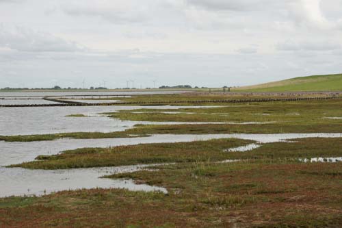 | Bis zu den unmittelbaren Orten, an denen der urlabende Urlaubsbär tobt, sind es einige Kilometer mit dem Auto zu Fahren. Das sollte hund sich vorher überlegen, bevor er sich für einen Urlaub mit seinen Zweibeinern entscheidet. Dazukommt, dass an den Strandabschnitten, die am schnellsten erreichbar sind, in der Regel kein Strand ist, wie er z.B. von Friedrichskoog bekannt ist (Rasen bis zur "Wasserkante"). Normalfall sind hier Salzwiesen, | ||||