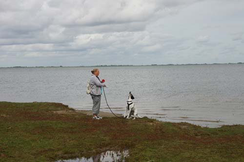 | Bei Tetenbüll am Everschopsiel Hafen und Badestrand gibt es am Deich ein Fleckchen Erde, dass hervorragend zur hündischen Erholung geeignet ist. Vor allem gibt es zahlreiche Stellen, wo man die Zweibeiner mal ableinen kann und Hund auch mal etwas allein zu seiner eigenen Erquickung unterwegs sein kann. | ||||