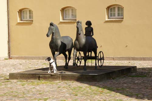 | Tagesziel war Schleswig. Sie ist Kreisstadt des Kreises Schleswig-Flensburg, ehemalige Hauptstadt des Herzogtums Schleswig. Schleswig liegt wie Flensburg an der "Ostseeseite" von Schleswig-Holstein. Da kommt Hund ganz leicht drauf, wenn Hund weiß, dass das Meerwasser in Flensburg und Schleswig weniger salzig schmeckt, als z.B. in Husum. Der Besuch startete am Schloss - das war mal die Residenz der Herzöge von Gottorf. Nach dem Verlust der Residenzfunktion war Schleswig Regierungs- und Parlamentssitz des Herzogtums Schleswig und wurde letztendlich Hauptstadt der preußischen Provinz Schleswig-Holstein. | ||||