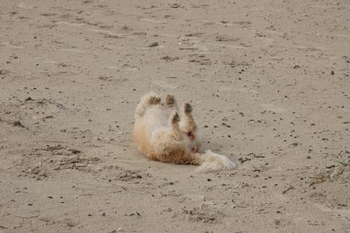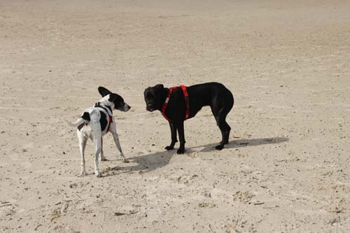 Nach dem gemeinsamen Frühstück fiel die entscheidung für St. Peter Ording und den dortigen Hundestrand. Dort war wieder jede Menge los - trotz eines richtig stürmischen Windes von der See her. Jede Mege Hunde waren unterwegs und ich habeauch die beiden Kleinen vor aufdringlichen großen Hunden bewacht. |