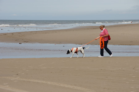 | Auch in Vejers kann man ganz wunderbar den breiten Sandstrand entlang wandern, obwohl - ich habe die Zweibeinerin die meiste Zeit an der (Schlepp)-leine geführt, mit Autoverkehr ist auch am Strand nicht zu spaßen... | |||||
