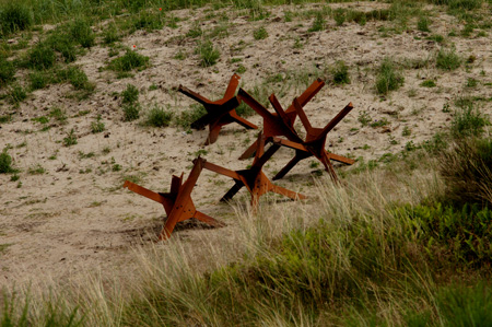 | Eben am Esbjerger Strand befindet sich ein sehr eigenwilliges Denkmal - es heißt, dass das das Wahrzeichen von Esbjerg sein soll... . Na ja - Hund muss ja nicht jede zweibeinerische Idee gut finden. Mir wurde berichtet, dass das Denkmal selbst aus 10km Entfernung vom Wasser her gut sichtbar sein soll. Den Zweibeiner haben die 4 gigantischen Figuren irgendwie an die Monumentalwerke einer dunklen deutschen Epoche erinnert... | |||||