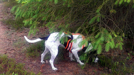| Einen solchen Hundeskov - ganz in der Nähe von unserem Ferienhaus - haben wir heute besucht. Das hat wieder riesigen Spaß gemacht, eben einfach hündischer Freilauf im Wald. So'n Hütehund a la Border-Collie mag ja vielleicht auch damit zufrieden sein, wenn er auf einem Hühnerhof Hühner sortieren darf, aber für uns Jagdkönige aus der Vorsteher-Gilde gibt es nichts Interessanteres als Nasenarbeit im Wald. So was wünsche ich mir auch zu Hause! | |||||