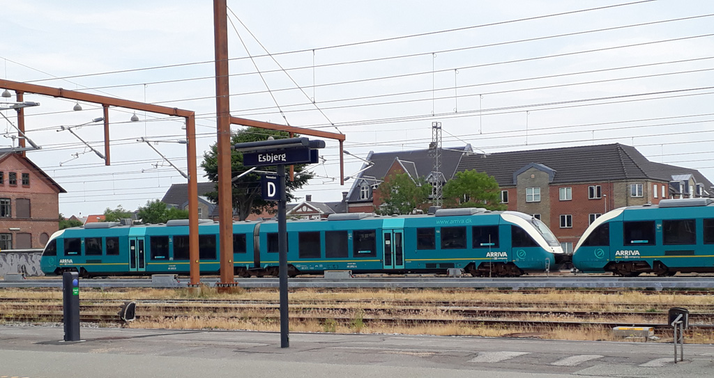 | Das obere Foto zeigt einen Dieseltriebwagen in Diensten der DSB-Regio. Die blauen Triebwagen auf dem unteren Bild verkehren in Auftrag der Arriva, derenGesellschafter die DBAG ist... An diesem Tag konnte die DSB den Bahnhof Esbjerg nicht mit IC's anfahren, da ein größerer Schaden in der Stromversorgung der Fahrleitung vorlag. Laut Zweibeiner erinnert das es an die DBAG in Deutschland und daran dass insbesondere die Jahreszeiten Frühling, Sommer, Herbst und Winter eine große Gefahr für die Durchführung eines fahrplanmäßigen Bahnverkehr darstellen. Dabei hat der Zweibeiner schon mehrfach in glaubhafter Weise berichtet, dass man noch in seiner Jugendzeit seine Uhr nach der Bahn stellen konnte... | |||||