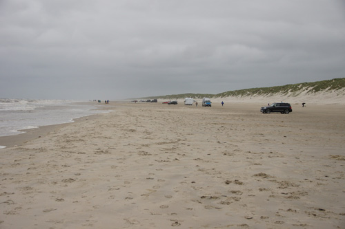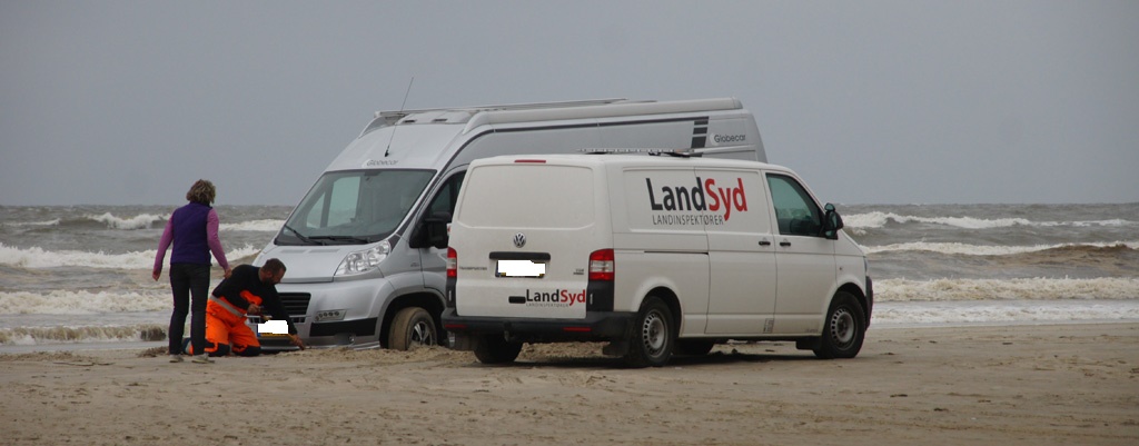 | Der nächste Tag war erstmal ohne Regen, aber eben noch immer ziemlich viel Wind. Aber wir wollten an den Strand. Da der Weg an's Wasser nirgendwo kürzer ist als am Autostrand in Vejers war der als Ziel "gesetzt". Am Strand angekommen gab eserstmal richtig "Fun": | |||||