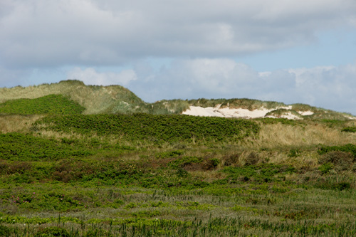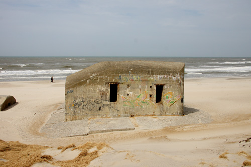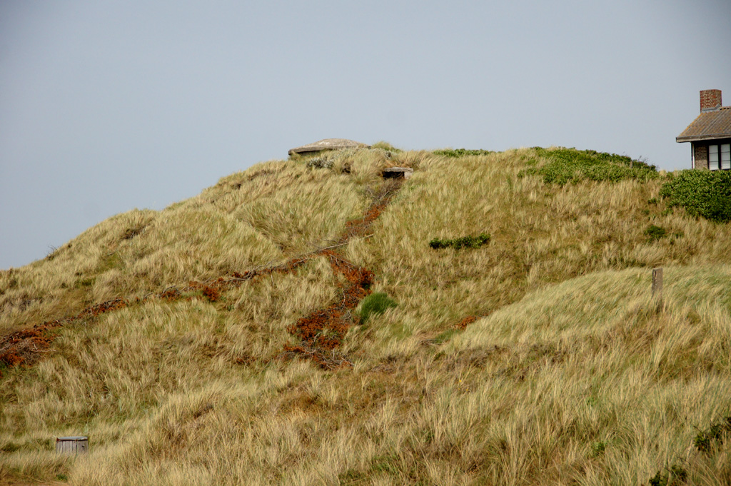 | Die Sanddüne neben dem am höchsten gelegenen Haus sieht auf den ersten Blick aus wie eine ganz normale Sanddüne. Bei genauerem Hinsehen erkennt man, dass die Düne eigentlich keine Düne, sondern ein perfekt getarnter Bunker ist... | |||||