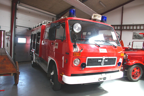 | Bei den Feuerwehrfahrzeugen dominieren Fahrzeuge, deren Wurzeln in den 30-er Jahren liegen. Damals ist offenbar in Dänemark eine ganz andere Taktik bei der Brandbekämpfung angewendet worden, als die zeitgleich in Deutschland zur Anwendung kam. Die Fahrzeuge waren hinsichtlich ihrer Fahrgestelle meistens amerikanischen Ursprunges. Dazu eine leistungsfähige Feuerlöschpumpe (meist als Vorbaupumpe), umfangreiches Schlauchmaterial und ein umfassender Leiterpark (die Leitern nicht selten als Abprotzleiter). Ansonsten kaum weitere feuerwehrtechnische Beladung... | |||||