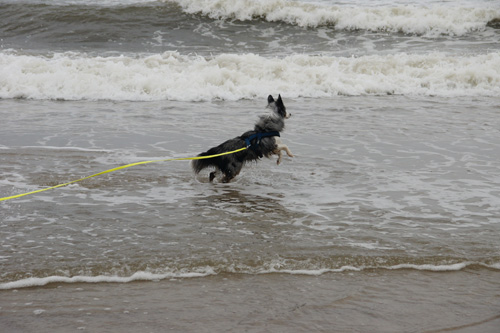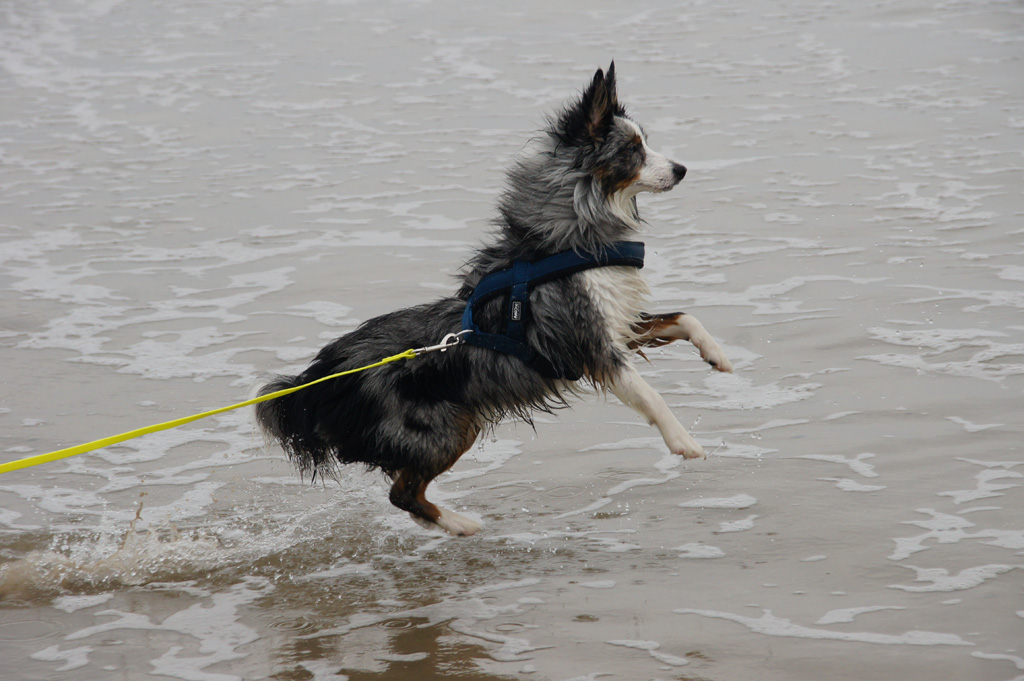 | Am Strand war natürlich immer Gelegenheit, sich etwas körperlich auszulasten, auch wenn Odin hier und da an der Schleppleine bleiben musste... | |||||