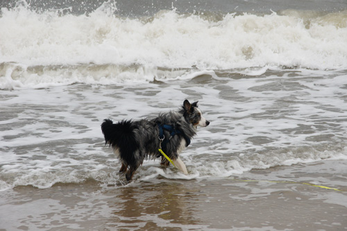 | Dass Odin das Wasser sehr lieben sollte, war mir bereits mitgeteilt worden. Was ich dann allerding am Strand von Hvide Sande erlebte, war jenseits jeder hündischen Vorstellungskraft. Am Anfang war der kleine Kerl mit einem Kampfgewicht von nur 7,6 kg gegen die respektabel hohen Wellen noch etwas mistrauisch. Dieses Mistrauen war innerhalb ganz kurzer Zeit Schall und Rauch. Dann gab es nur noch Odin und die Wellen. Ich selbst habe dem Schauspiel aus sicherer Entfernung beigewohnt. Ein bisschen frage ich mich, wo hündischer Mut endet und Übermut anfängt... | |||||