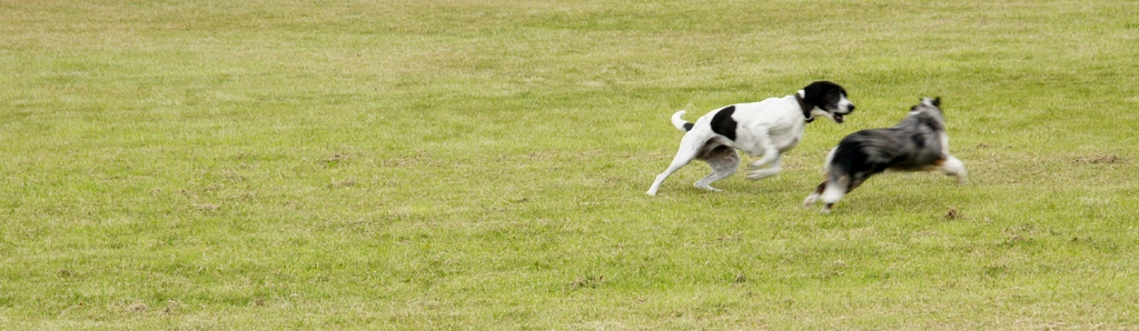 | Bekannter Maßen ist Odin als Mini-Sheperd eigentlich ein Hütehund. Ich habe von Hütehunden gehört, die auf ihrem heimatlichen Hof Hühner sortiert haben. Odin macht es richtig - der gibt richtig Gas mit einem Jagdhund. | |||||