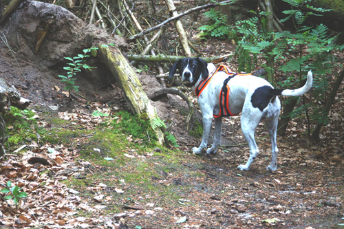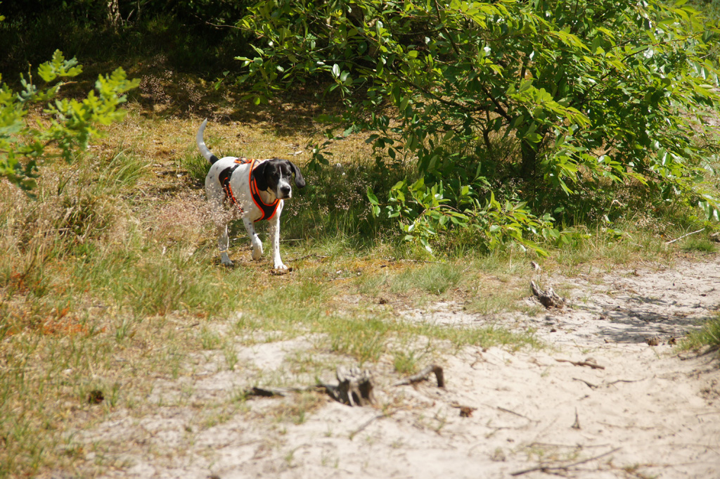 | Aber es gab noch einen Besuch im Hundewald. Den Hundewald von Nymindegab Kro kannte ich schon aus dem Vorjahr. Ganz anders als im Hundewald bei Ringköbing sind die Wege hier schmal und das Geländeist ziemlich unübersichtlich - vorallem für die Zweibeiner. Mit Odin hat es wieder großen Spaß gemacht. | |||||