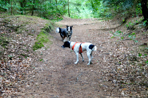 | Hündisch viel interessanter war der anschließende Besuch im Hundewald von Ringköbing... Odin war zum ersten Mal in einem solchen Hundewald. Durch mich weiß er jetzt, dass man z.B. bei einem solchen Besuch nicht wirklich über die Stränge schlägt und den Zweibeinern ein Mindestmaß an Aufmerksamkeit entgegen bringt. Schließlich soll es ja nicht der letzte Hundewald-Besuch sein... | |||||