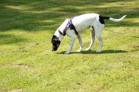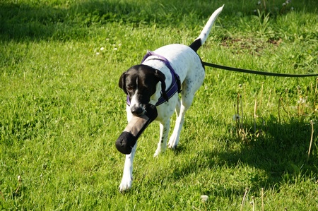 | Eine Sportart wurde mir allerdings von den Zweibeinern vom ersten Tag an ganz kategorisch untersagt: Hasenjagd. Nahezu auf jeden unserer Früh- und Abendspaziergänge in Skäret sind uns Wildkaninchen begegnet und ich hätte mit denen gern mal "Häschen-Hasche" gespielt. Aber "Nein" ist eben "Nein". | |||