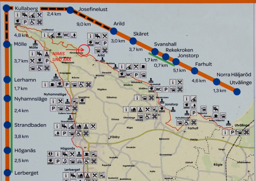 das Auto am Hafen in Arild abgestellt und auf einem küstennahen Wanderweg