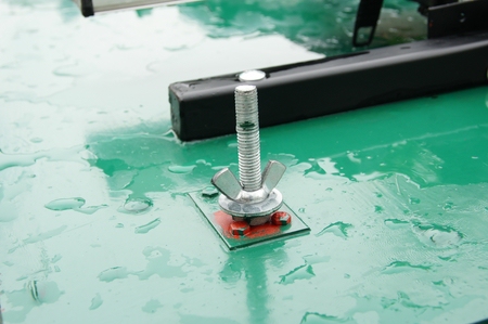 eingebaut, mittels derer der Deckel auf dem Kasten mit Knebelschrauben fixiert