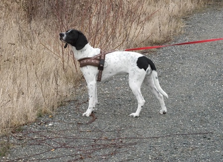 | Meine Zweibeiner sagen immer wieder, dass der Beagle in meinem Blut nur an meiner Körpergröße (Schulterhöhe 54cm, so um die 18kg) mitgewirkt hat. Ansonsten sehe ich aus wie ein richtiger Pointer und habe auch dessen Wesen: Schnelligkeit. Und ich bin "Hochwindsucher". | |||