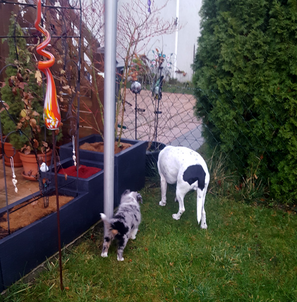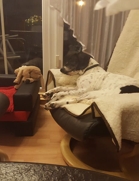 | 04.12.2017 | Oh Hund eh... War'n ganz verrückter Tag heute. Ich hatte Besuch - ja, wirklich ICH. Der Zweibeinerinnensohn und dessen Freundin waren in einer hochwichtigen Angelegenheit bei mir. Mit wurde heute nämlich Odin vorgestellt... Odin ist deren neuer Hund, der auch über die Weihnachtsfeiertage mit bei mir und meinen Zweibeinern sein wird. Und da sollte getestet werden, ob wir uns vertragen würden... | |||||