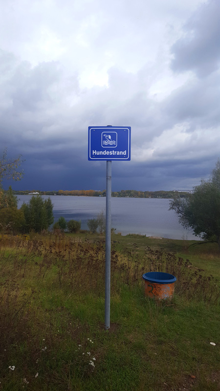 | Der Dienstplan meiner Zweibeinerin hatte mir und den Zweibeinern ein 4 gemeinsame freie Tage am Stück zugestanden - ja Hund, das war fast wie im Urlaub! Unter Anderem gab es am 03.10. einen gemeinsamen Spaziergang am Kulkwitzer See. Seitdem dort (seit dem Frühjahr 2017) überall Leinenpflicht gilt, waren wir nur noch selten dort. Aber seit heute wissen wir, dass es wieder einen ausgeschilderten Hundestrand gibt! FREU!!! | ![]() |