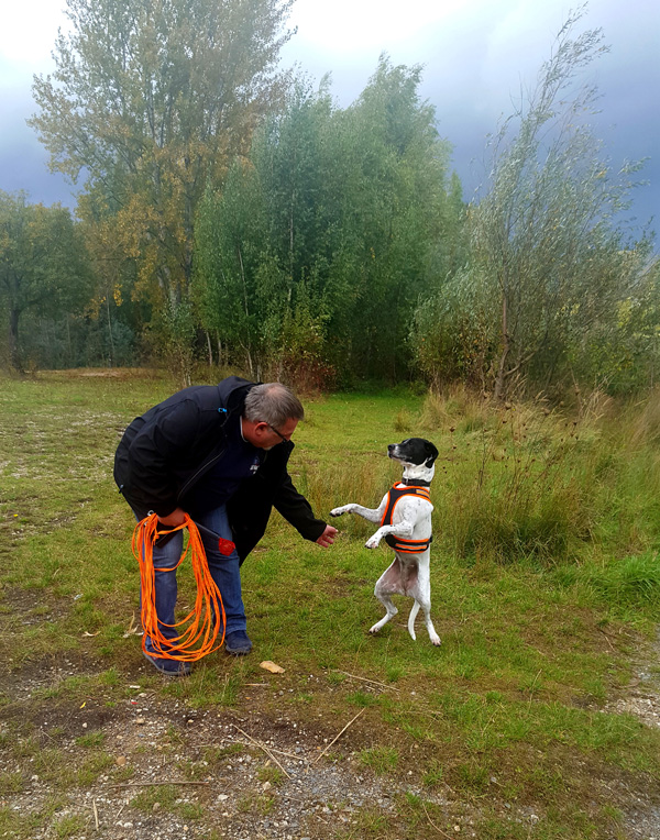 | O.k. - die beteiligten Zweibeiner haben ausdrücklich meine pointerische Superduperhypergeduld mit dem hyperaktiven Zwerg gelobt - ich habe den nur ein einziges Mal RICHTIG gemaßregelt. Aber so bin ich eben... | ||||||