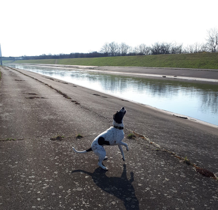 | 08.04.2018 | Warme Jahreszeit bedeutet für mich und meine Zweibeiner auch immer wieder "Elster". Vom Elsterwehr aus kann man ganz prima Spaziergänge auf dem Elsterdeich machen. Für die Zweibeiner ist der asphaltierte Deichweg gut zu laufen und ich habe an Deich und Wasser gute Nasenarbeit zu leisten. | |||