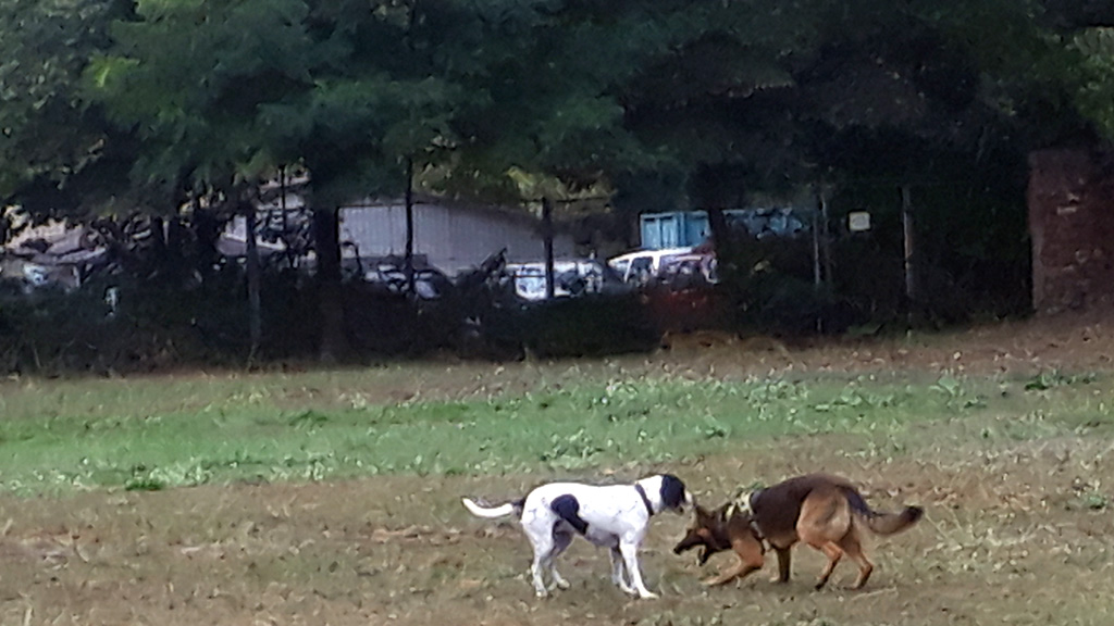 | Im vergangenen Jahr habe ich ganz lange mit Roberts American-Bulldog-Hündin im Lößniger Park geübt, dass sich eine dominante Jagdhündin und eine Bulldog-Hündin aus ehemals schlechter Haltung aneinander annähern und miteinander auskommen können. Eine Lebererkrankung hat dazu geführt, dass wir keine Zeit mehr hatten, dicke Freunde zu werden. Wir wären das ganz sicher geworden - garantiert. | ||||
