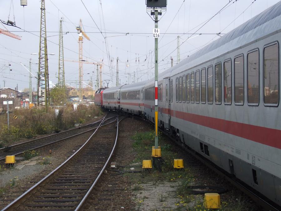 25.10.2008. Ausfahrender IC nach München. Zuglok ist 120 136.