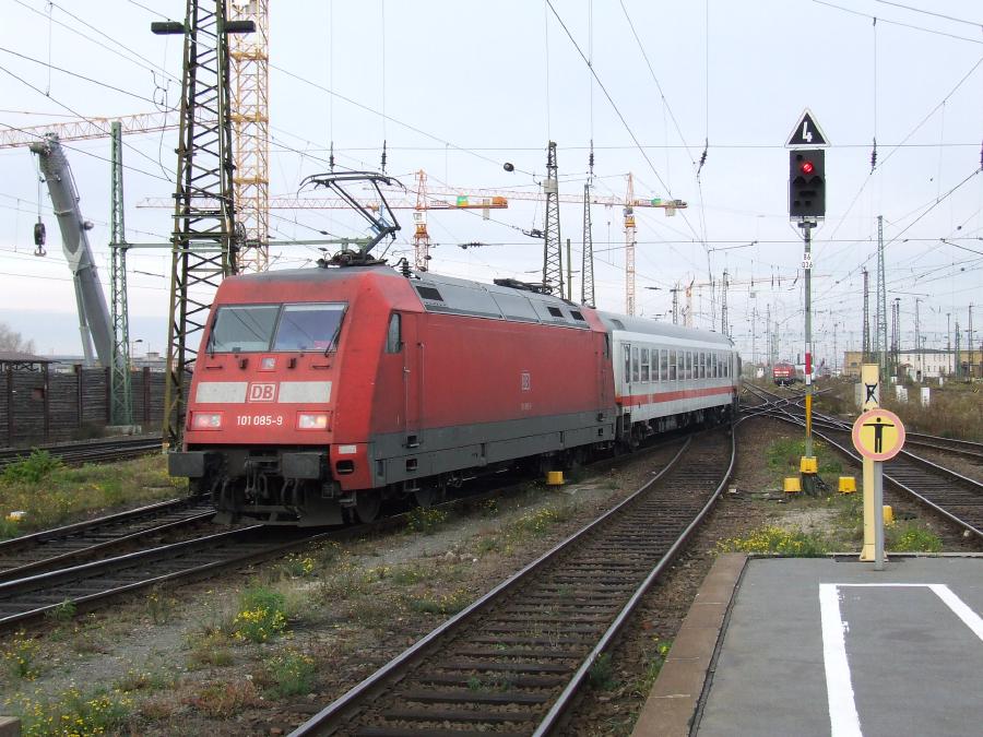31.10.2008. Wegen des Stezerwagenmangels läuft dieser IC München - Berlin mit "Sandwiches" - d.h. ein Tfz an jedem Zugende. Schließlich muss in Nürnberg und Leipzig "Kopf gemacht" werden.