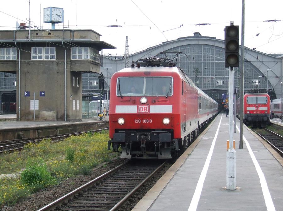 31.10.2008. 120 106 hat ihren Ersatzzug übernommen und startet nach Frankfurt.