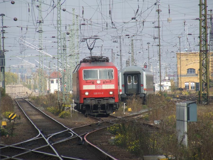 25.10.2008. 362 926 hat den Wagenpark des "Münchners" in das Bahnhofsvorfeld abgezogen, 120 111 setzt um...