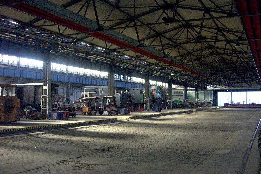 2002. Richthalle des Dampflokwerkes Meiningen. In der Richthalle sind heute alle wichtigen Bereiche (Ausnahme Lackiererei, Anheizschuppen) konzentriert.