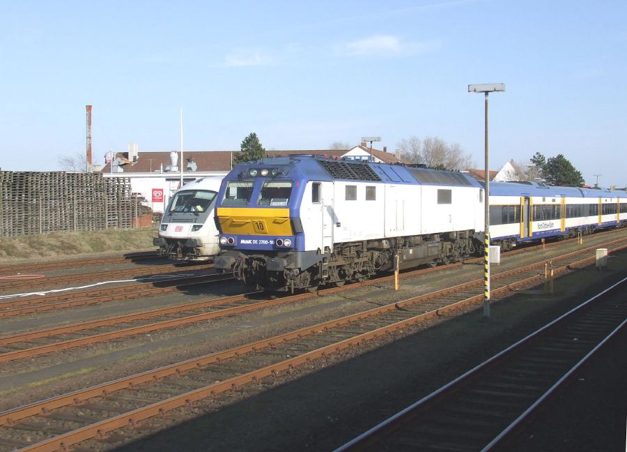 29.03.2009. Auch die bereits gezeigte DE2700-10 hatte mit ihrenm Zug zur Abstellgruppe umgesetzt und konnte dort aus dem ausfahrenden Zug abgelichtet werden.