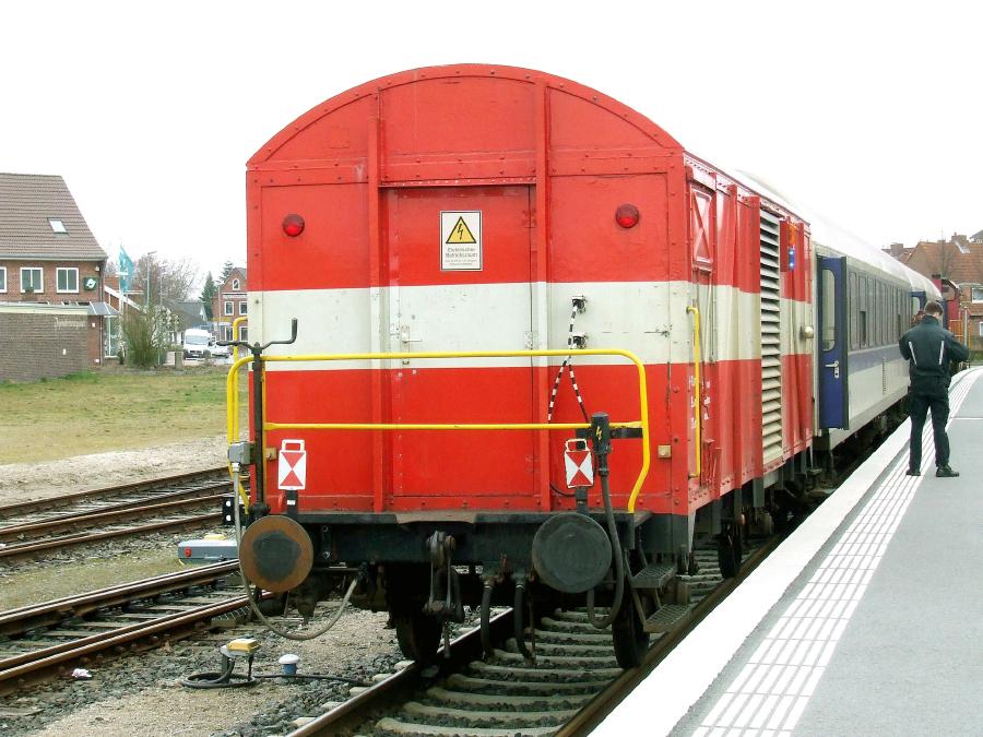 01.04.2009. Niebüll. Für die Stromversorgung der IC-Wagen im Kurswagenverkehr und die Heizung der NOB-Wagen bedient sich die nEG eines Generatorwagens...