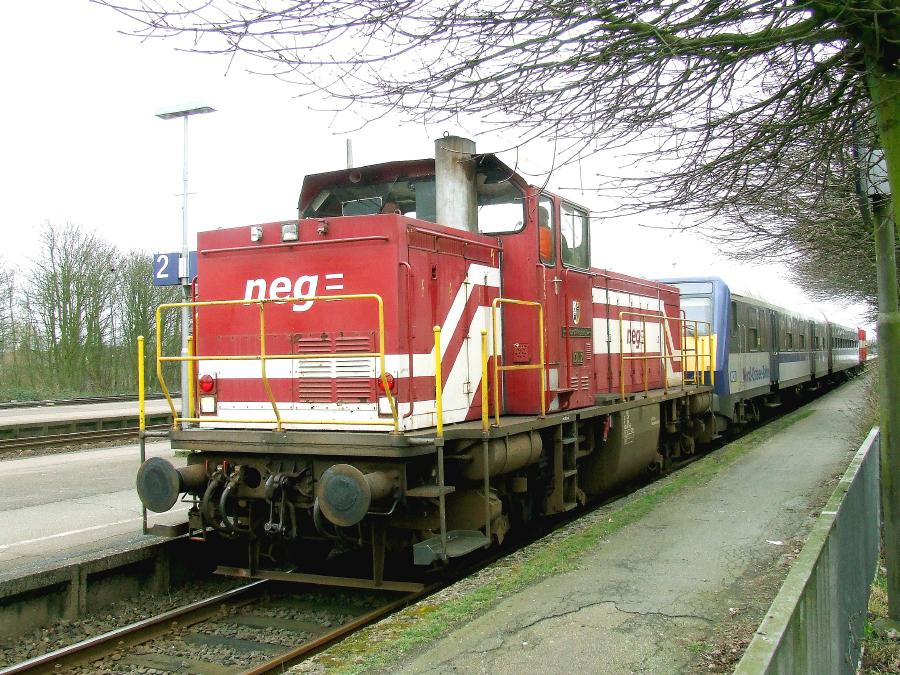 01.04.2009. Niebüll. Die DL.2 der NEG im DB-Bahnhof Niebüll...