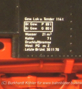 Zum Modell selbst: 38 5308-2 (ex 38 308, ex Sachs / Fabr.-Nr. 4504, Hartmann) Rbd Dresden BW Nossen letzte Bremsrevision 30.11.1970 |