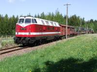 einem stilechten NVA-Militärgüterzug auf der Strecke Schwarzenberg