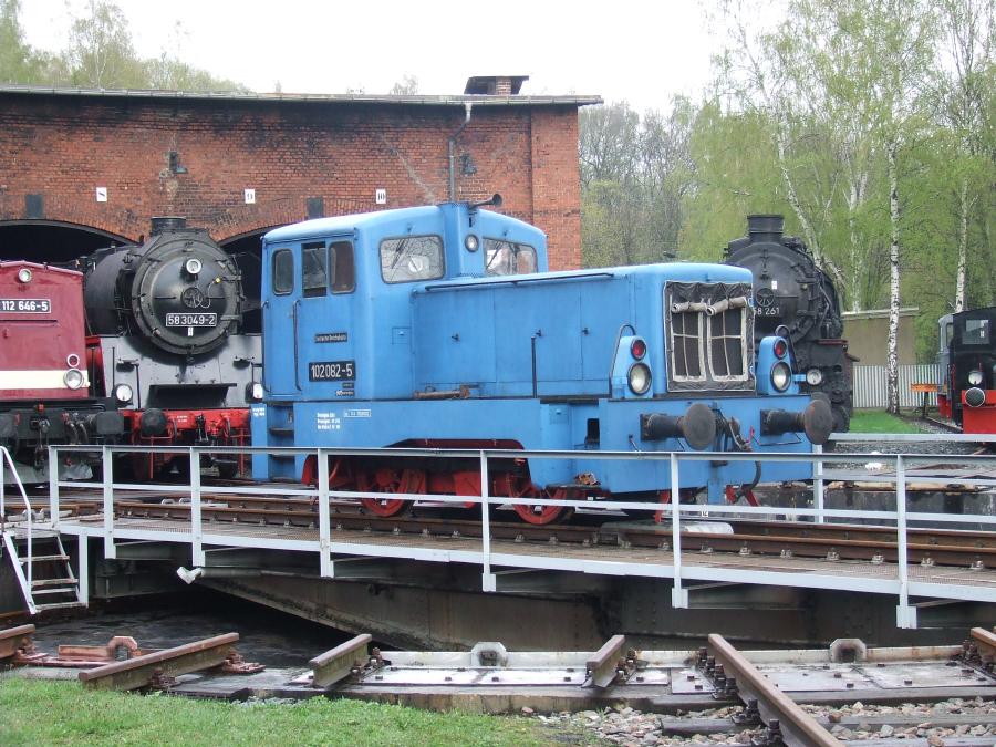Eisenbahnmuseum Schwarzenberg. Der "Hofdackel" 102 062 auf der Drehscheibe...