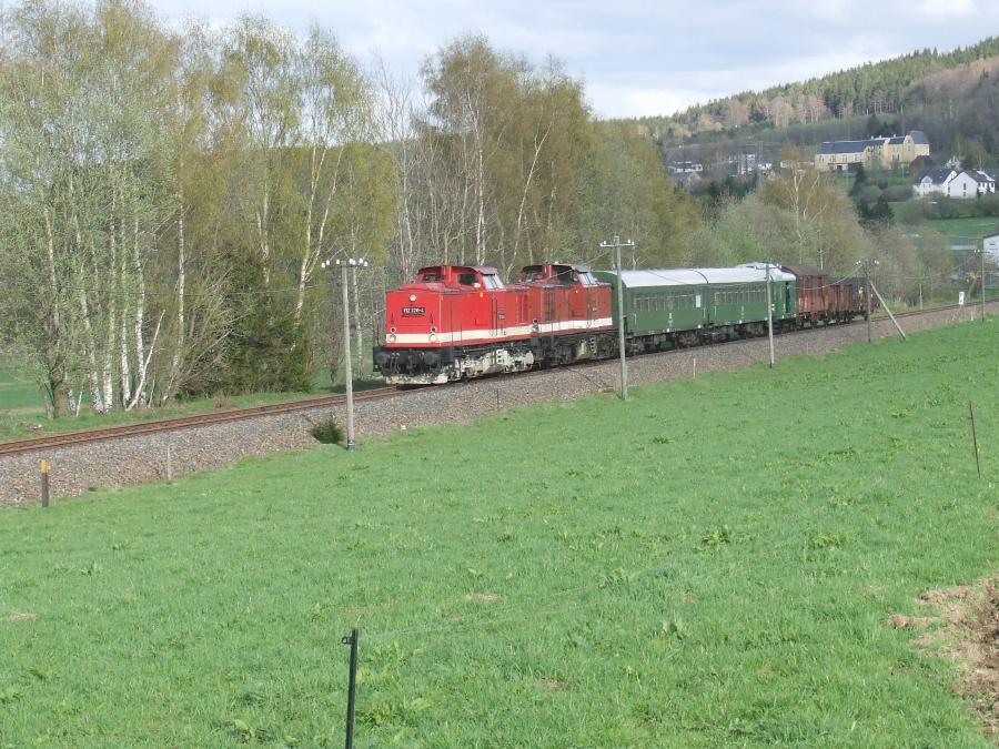 Der GmP ist mit 112 326 und 112 516 unterwegs nach Schwarzenberg. Zwischen