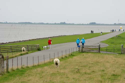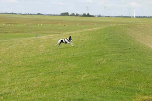 | Bei Tetenbüll am Everschopsiel Hafen und Badestrand gibt es am Deich ein Fleckchen Erde, dass hervorragend zur hündischen Erholung geeignet ist. Vor allem gibt es zahlreiche Stellen, wo man die Zweibeiner mal ableinen kann und Hund auch mal etwas allein zu seiner eigenen Erquickung unterwegs sein kann. | ||||