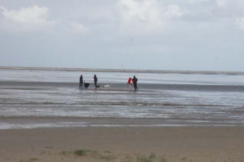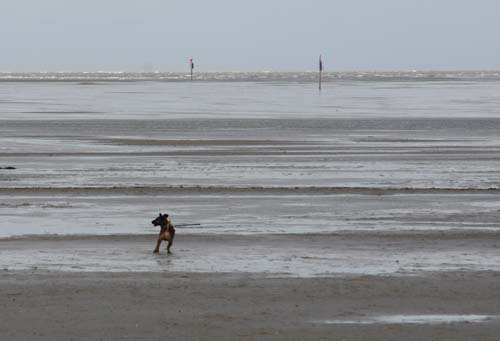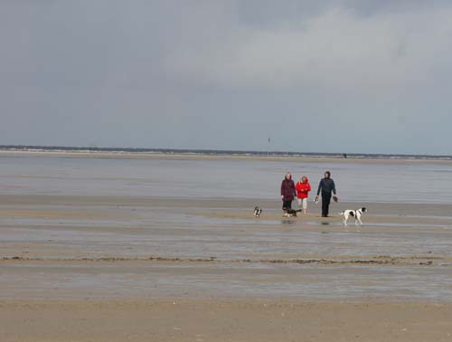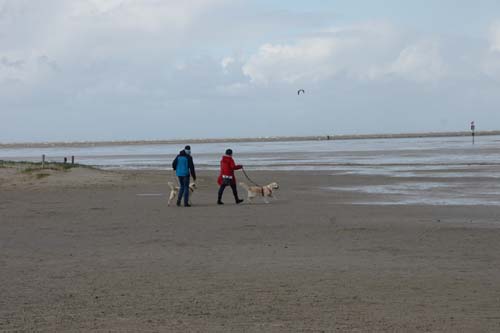 Nach dem gemeinsamen Frühstück fiel die entscheidung für St. Peter Ording und den dortigen Hundestrand. Dort war wieder jede Menge los - trotz eines richtig stürmischen Windes von der See her. Jede Mege Hunde waren unterwegs und ich habeauch die beiden Kleinen vor aufdringlichen großen Hunden bewacht. |